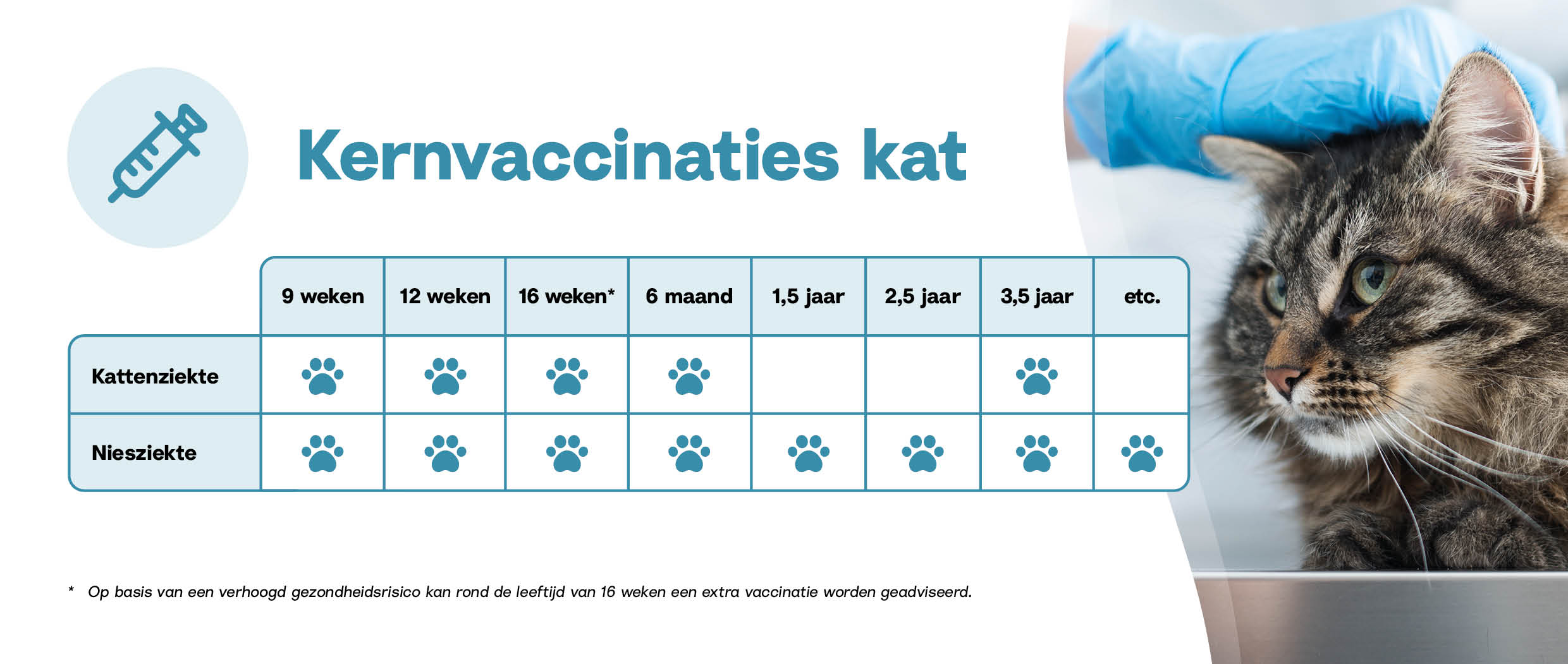Iedere kat is anders. Daarom kijken we naar de leefstijl van jouw kat. Leeft je kat binnen of buiten? Heeft hij contact met andere katten, verblijft hij in een pension of gaat hij mee naar het buitenland?.